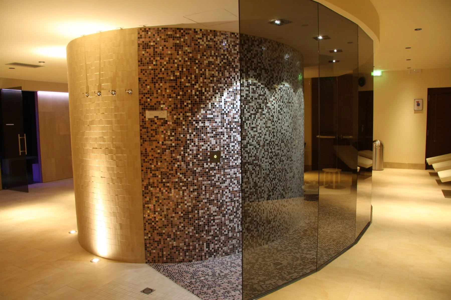 Il bagno turco, o sauna di vapore, è un’ambiente isolato in cui la temperatura è mantenuta sui 45° e l’umidità raggiunge quasi il 100%.