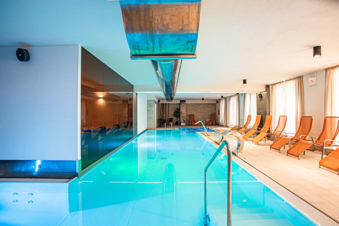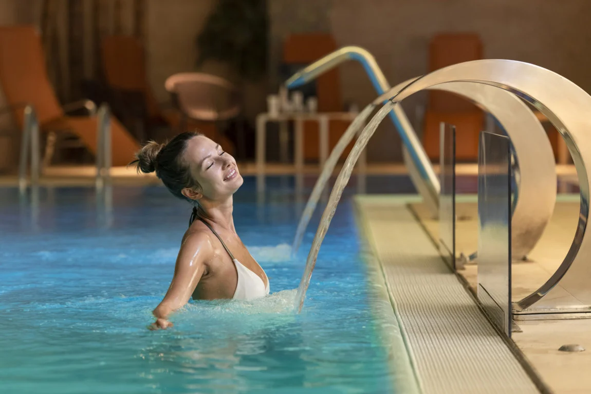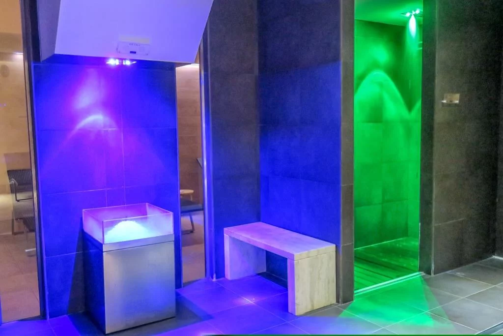 Die minimale Wassertemperatur beträgt 33 °C und die Beleuchtung erfolgt nach den Prinzipien der Farbtherapie. Das Vorhandensein von Hydromassagedüsen, Halswirbel-Kaskaden und drei bequemen ergonomischen Whirlpool-Liegen trägt zu dieser entspannenden Erfahrung im Wasser bei.