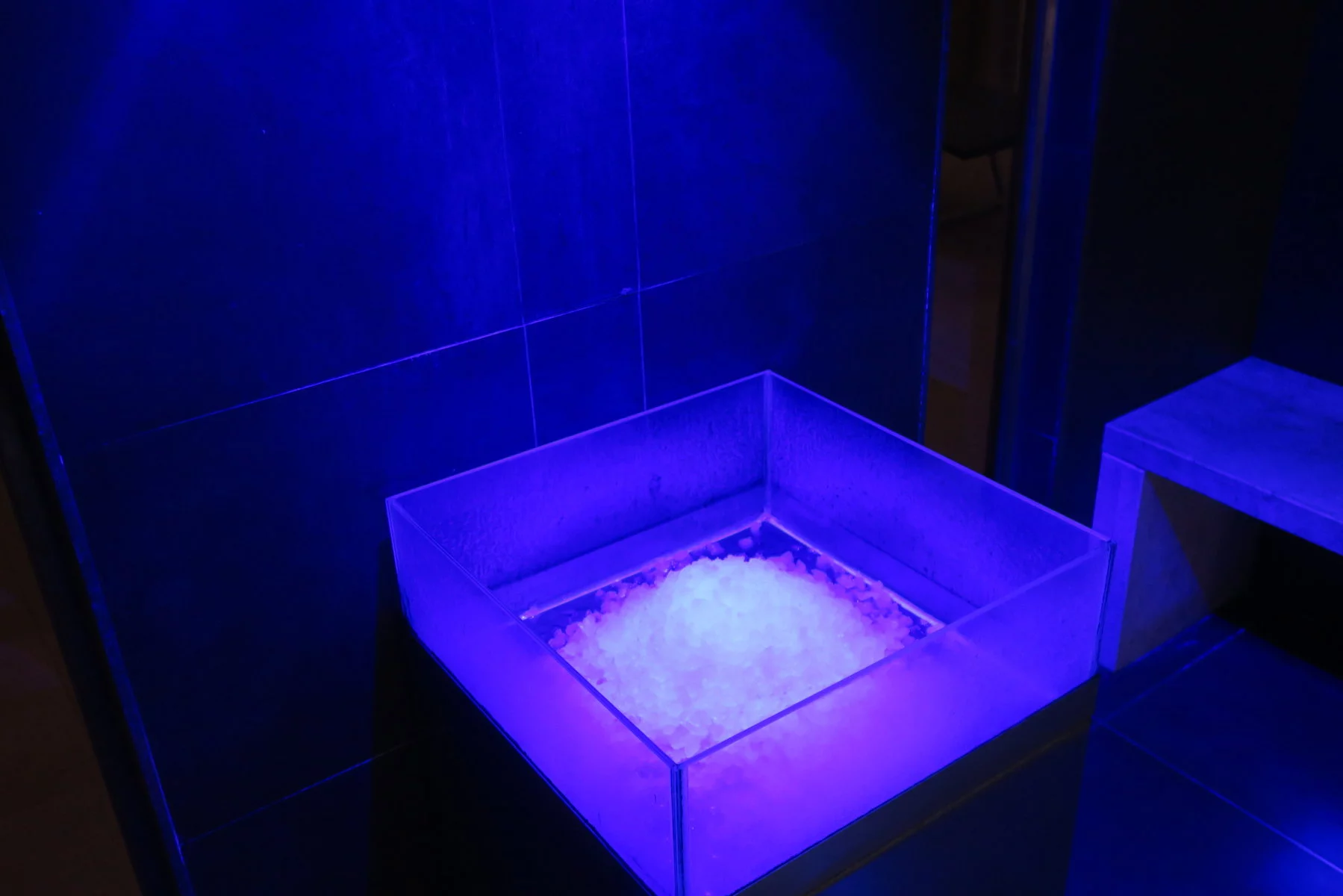 Die Wand des Salzraumes wird durch einen Ofen beheizt und ist mit rosa Salzblöcken aus dem Himalaya bedeckt. Die Temperatur beträgt etwa 30 °C bei einer relativen Luftfeuchtigkeit von etwa 40 %. Die kristallinen Salz-Mikropartikel in der Luft wirken antibakteriell und entzündungshemmend und tragen zur Stärkung des Immunsystems und der Atemwege bei.